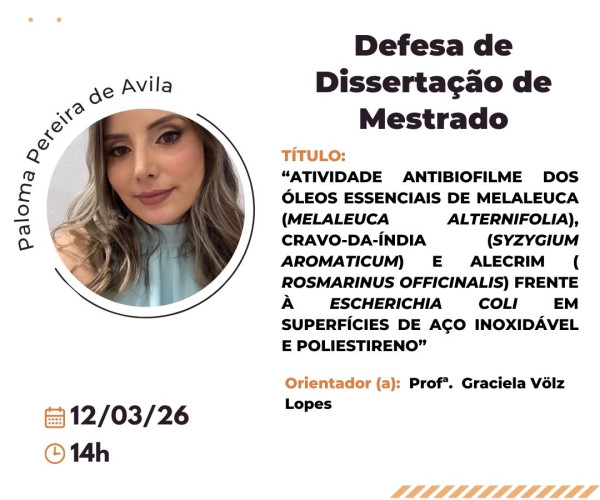 Convidamos a todos para assistir a Defesa de Dissertação de Mestrado da discente Giovana Wink Faleiro....