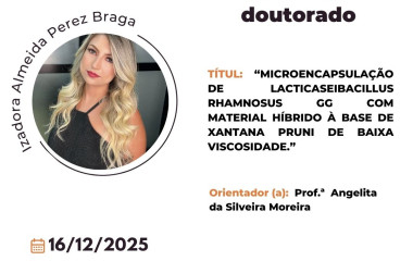 Convidamos a todos para a Defesa de Tese de Doutorado da discente Izadora Almeida Perez Braga....