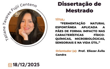 Convidamos a todos para assistir a Defesa de Dissertação de Mestrado da discente Tatiane Tavares Fujii Centeno....