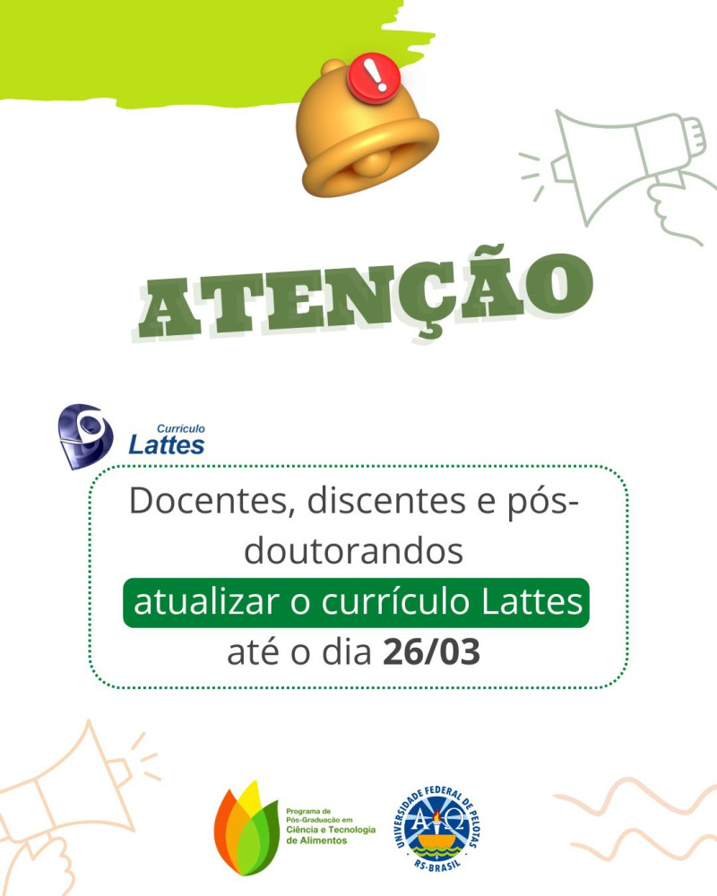Atenção docentes, discentes e pós-doutorandos devem atualizar seu currículo Lattes até o dia 26/03.