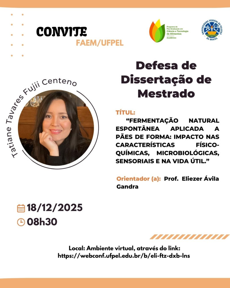 Convidamos a todos para assistir a Defesa de Dissertação de Mestrado da discente Tatiane Tavares Fujii Centeno.