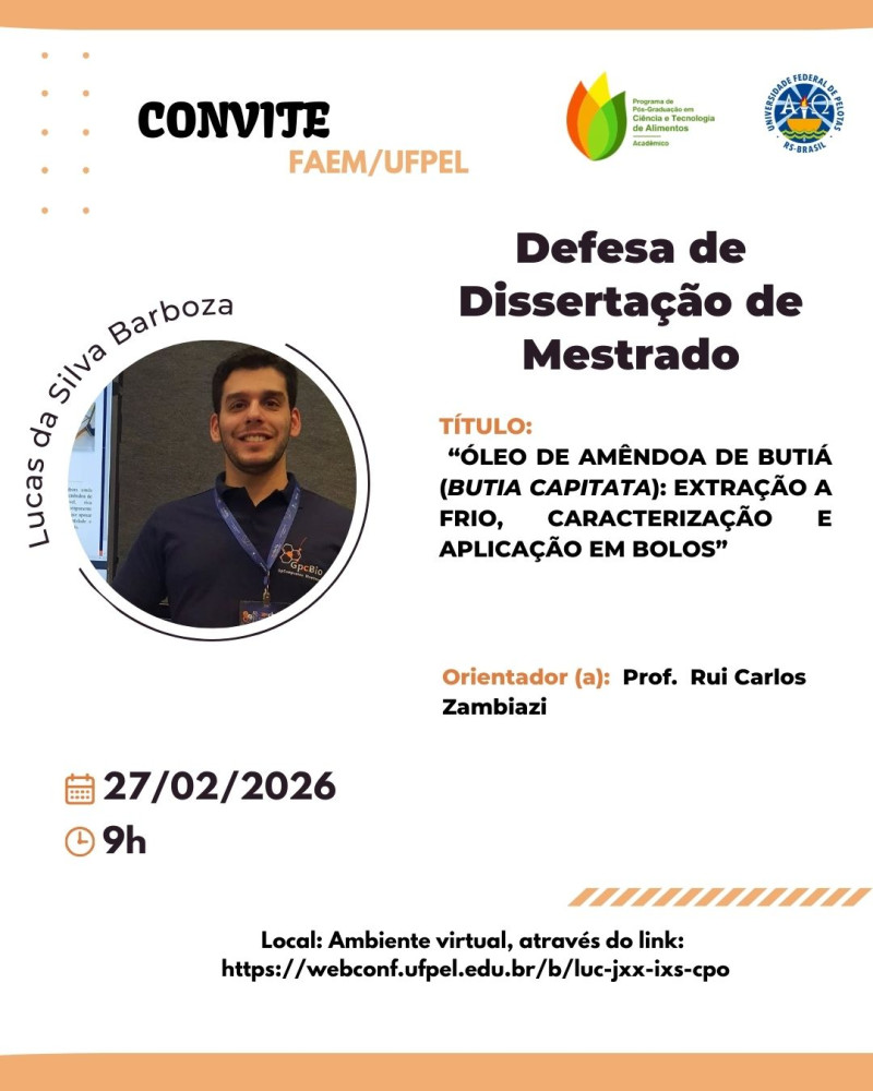 Convidamos a todos para assistir a Defesa de Dissertação de Mestrado do discente Lucas da Silva Barboza.