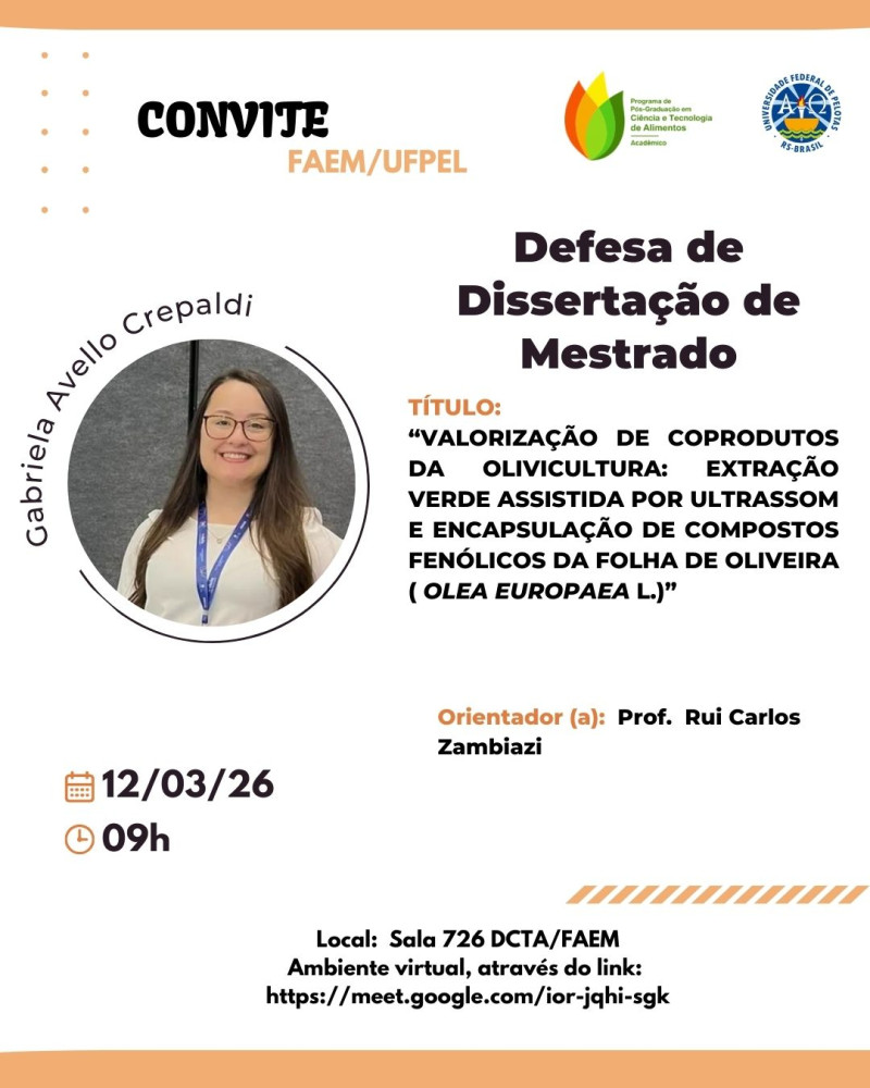 Convidamos a todos para assistir a Defesa de Dissertação de Mestrado da discente Gabriela Avello Crepaldi.