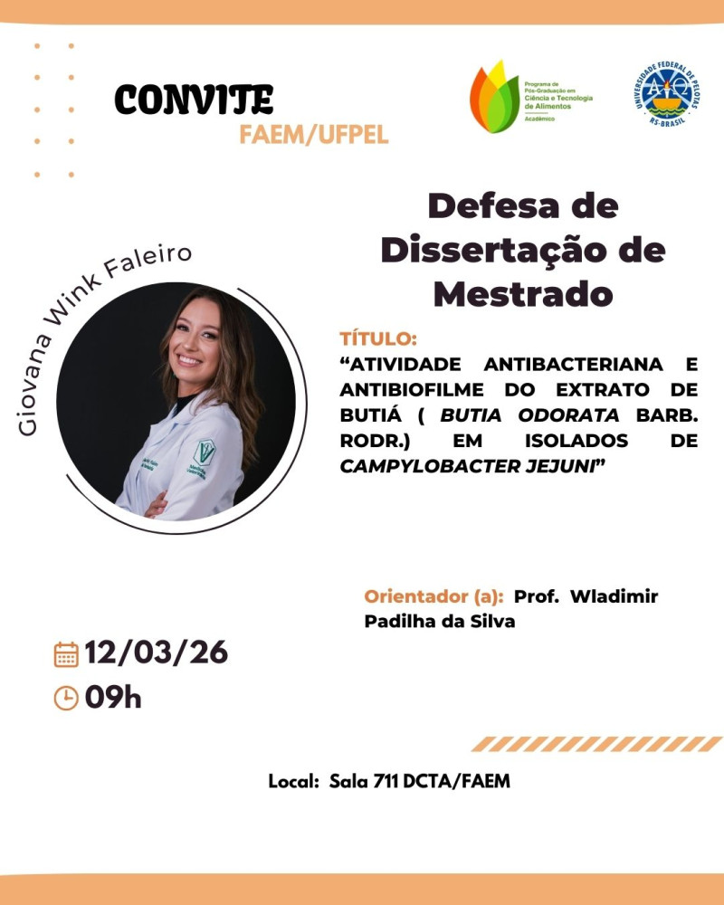 Convidamos a todos para assistir a Defesa de Dissertação de Mestrado da discente Giovana Wink Faleiro.