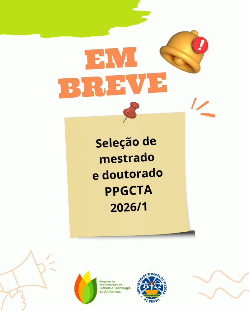 Em breve será lançado o edital para Seleção de Aluno Regular para Mestrado e Doutorado do PPGCTA, com ingresso em 2026/1.