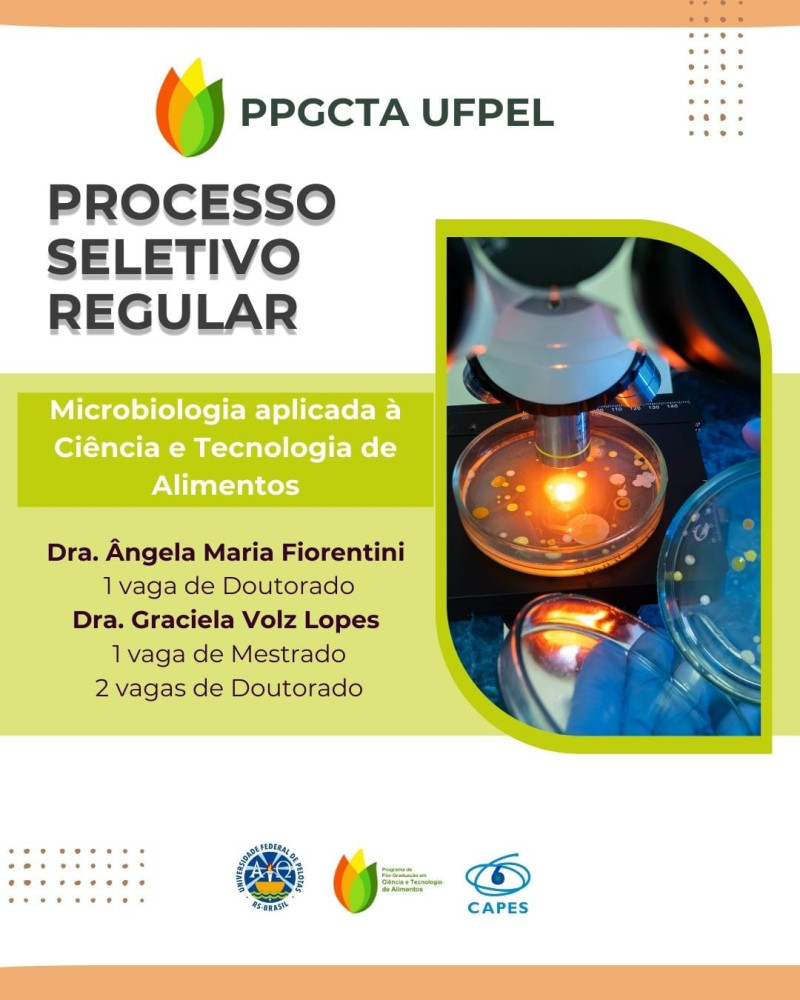 Confira a oferta de vagas para os editais de Seleção de Alunos Regulares de Mestrado e Doutorado 2026/1 do PPGCTA.