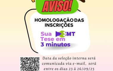 Confira a lista de inscrições homologadas para a seleção interna do PPGCTA da Sua Tese em 3 Minutos....