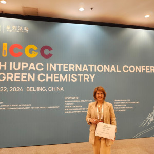 Dra. Márcia Foster Mesko, docente do PPGCTA, recebe prêmio de Melhor Pôster na 10ª Conferência Internacional da IUPAC sobre Química Verde, apresentado em Beijing, na China. O trabalho foi realizado em parceria com a Dra. Paola de Azevedo Mello, docente do PPGQ-UFSM. Parabéns pela premiação!