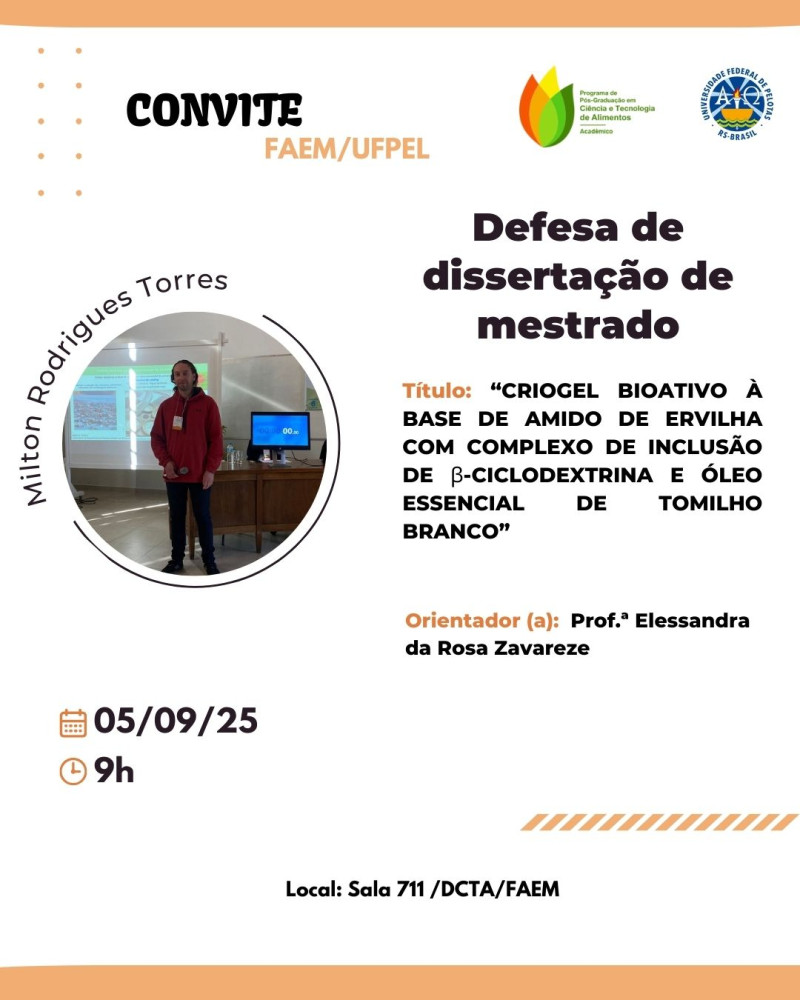Convidamos a todos para a defesa de mestrado do discente Milton Rodrigues Torres.
